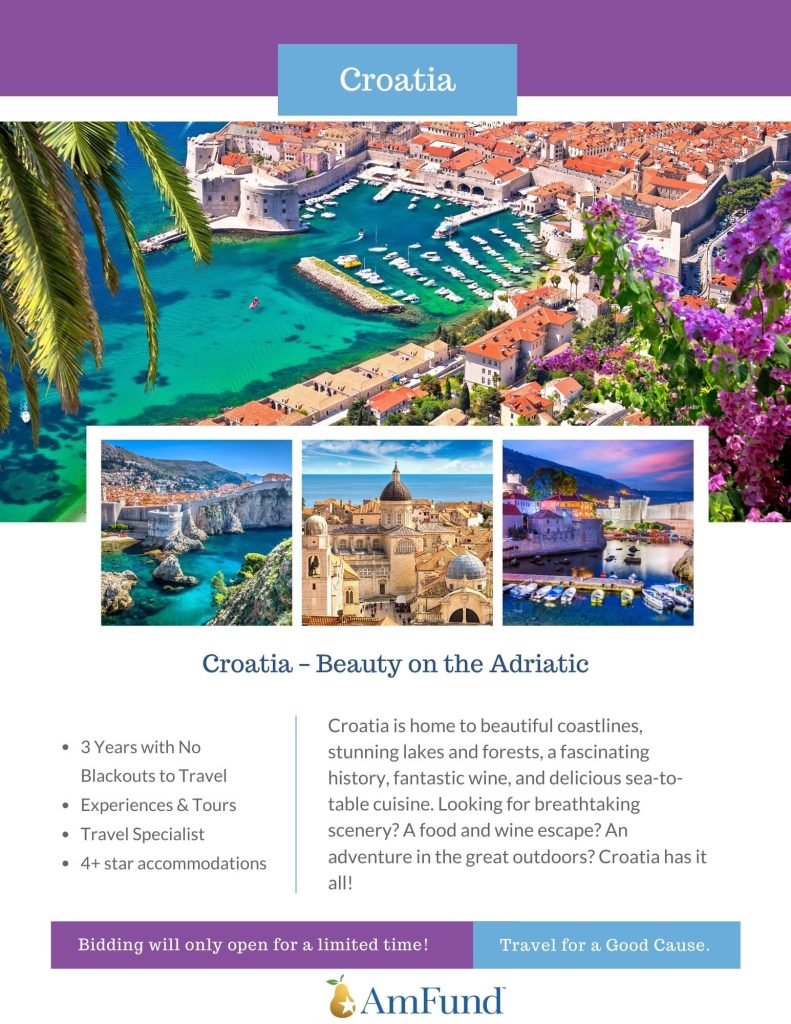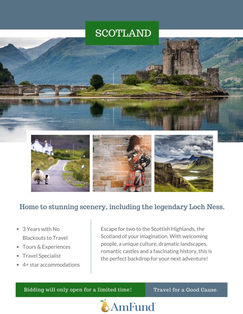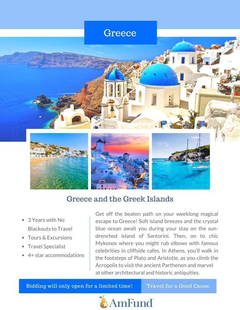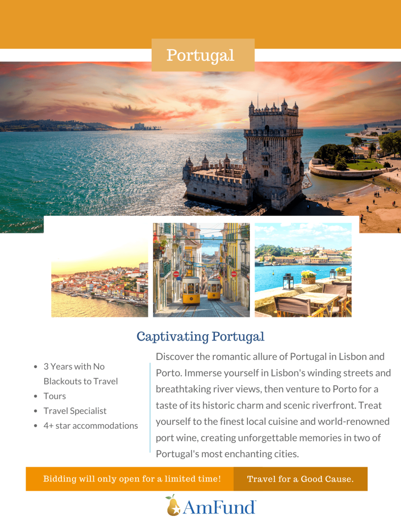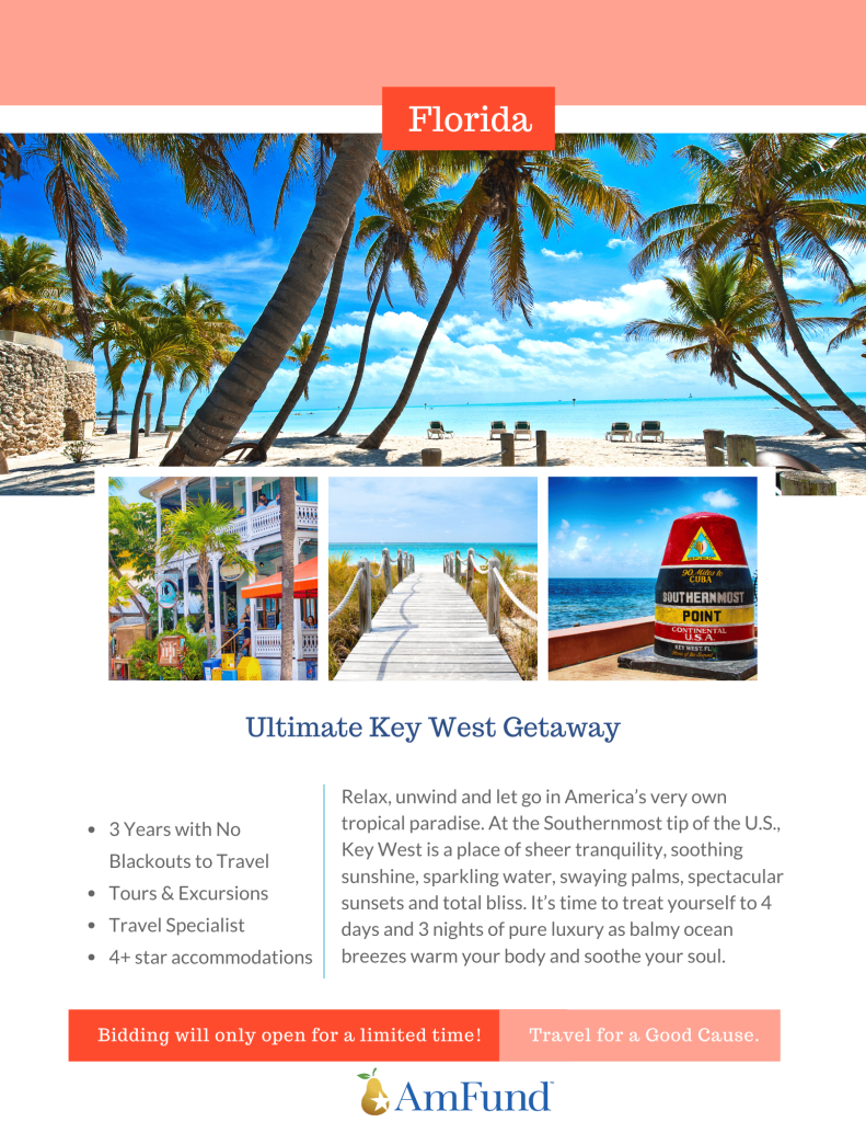We are thrilled to be partnering with the American Fundraising Foundation, AmFund, to bring you the chance to take your own jet-setting adventure during our gala. As an exciting part of our silent auction, Amfund is helping to prepare 8 different travel packages to take auction winners on the trips of their dreams! All trip packages feature: