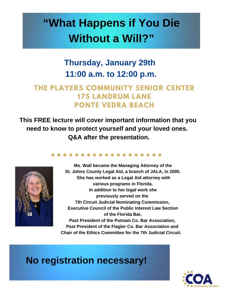 If you are unable to drive or cannot obtain a ride to and from the center, please click the button to download a Transportation Request Form. Please fill out the form and email it to COA’s Suzanne Chester at schester@coasjc.org or deliver it to her attention at THE PLAYERS Community Senior Center, 175 Landrum Ln., Ponte Vedra Beach, FL 32082. You may also obtain a copy of the form at the center.